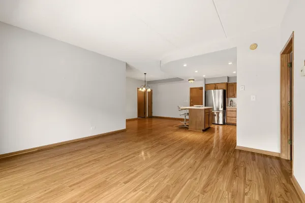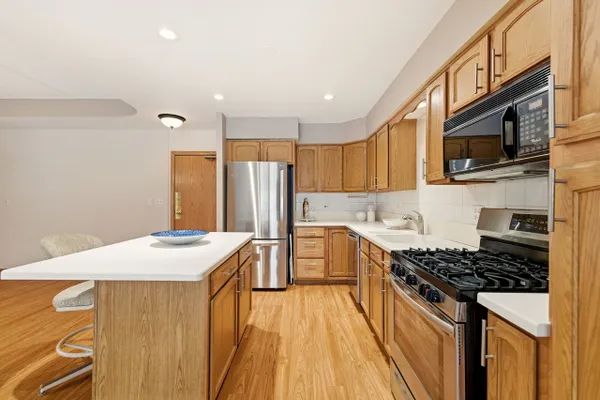 Welcome Home to the Desirable Courtyard of Harwood Heights. This Spacious Two Bedroom, Two Bath Condo is located in a Prime Harwood Heights location. This inviting condo features an open and functional floor plan with generous living and dining areas, with an abundance of natural light. The Kitchen has a Spacious Island with Seating, Newer Stainless-Steel Appliances, Newer Corian Countertop, Newer Decorative Backsplash & Recessed Lighting. The Living Room offers an Abundance of Space along with Sliding Glass Doors to the Private Balcony, overlooking the Courtyard and Gazebo. Escape to the Primary Bedroom with Oversized Walk-In Closet and Private Bath - complete with a Whirlpool Tub, Separate Shower, Dual Sink Vanity with Granite Counters and Linen Closet. The Laundry Room provides the convenience of an In-Unit Washer & Dryer. This condo has Updated Wood Laminate Flooring (2020), Updated Light Fixtures and Newer Pella Windows with an Upgraded Sliding Glass Door (2016). This condo has an assigned Garage Space in the Heated Garage along with a Storage Unit. This Courtyard condo also has an Elevator and a Car Wash in the Garage, Party Room and Professionally Landscaped Courtyard with a Gazebo. The condo is located in a well-managed building with strong reserves, offering comfortable living and a strong sense of community with well-maintained common areas and desirable amenities. Enjoy how close you will be to an abundance of Shops, Restaurants, Mariano's, Expressways, Public Transportation, O'Hare Airport and Parks. It provides all of the conveniences of urban living in a wonderful setting. It is also located in the Desirable & Highly Rated School Dst. 79 and Maine South HS. This exceptional condo presents an opportunity for low-maintenance living without compromise.
